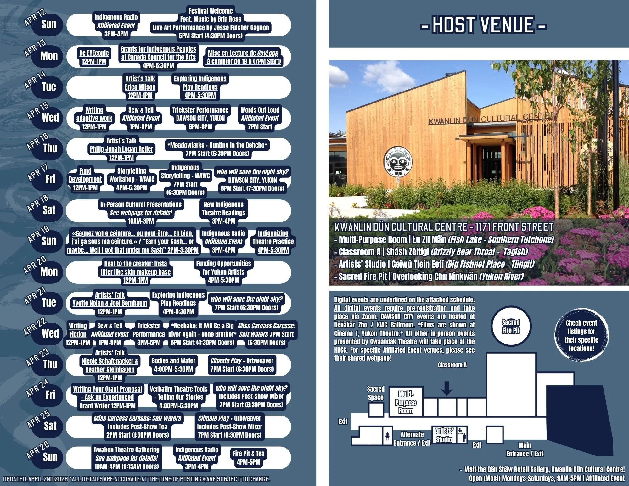Updated April 2nd, 2026. Details are accurate at the time of print/posting and are subject to change.