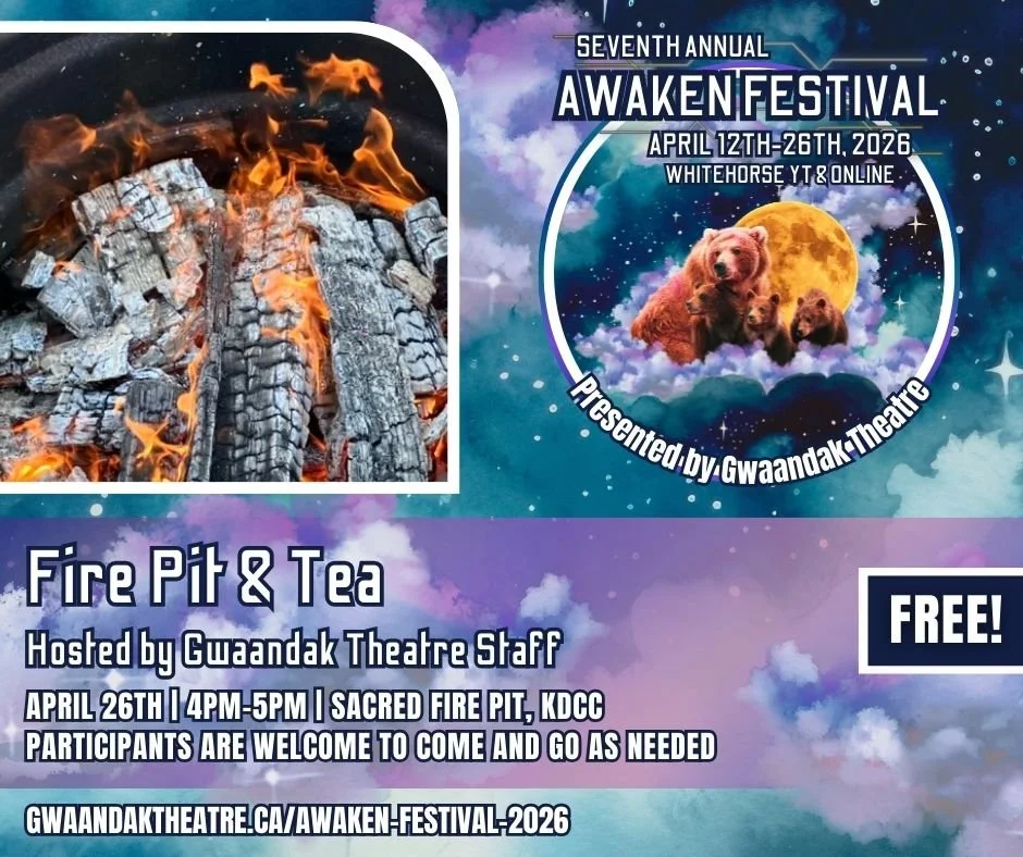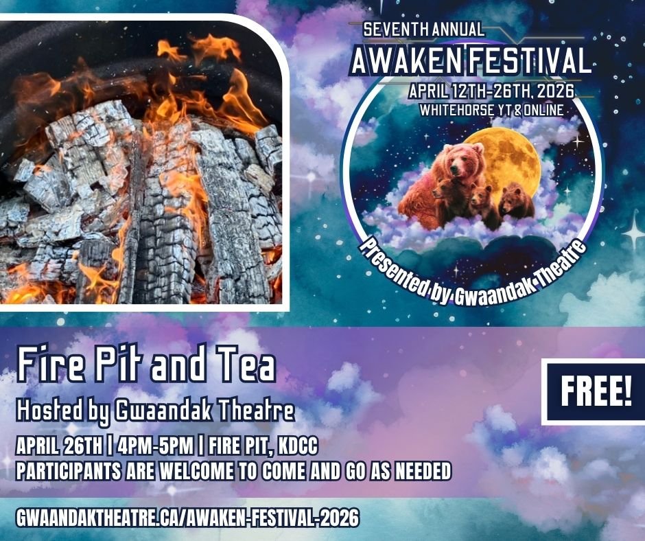 Join us for tea and connection at the KDCC Fire Pit on Sunday April 26th between 4PM-5PM as we close out the 2026 Awaken Festival. Meet new people and build on existing relationships, discuss the workshops and shows, as well as share in mutual experiences as lovers of Indigenous theatre and art.