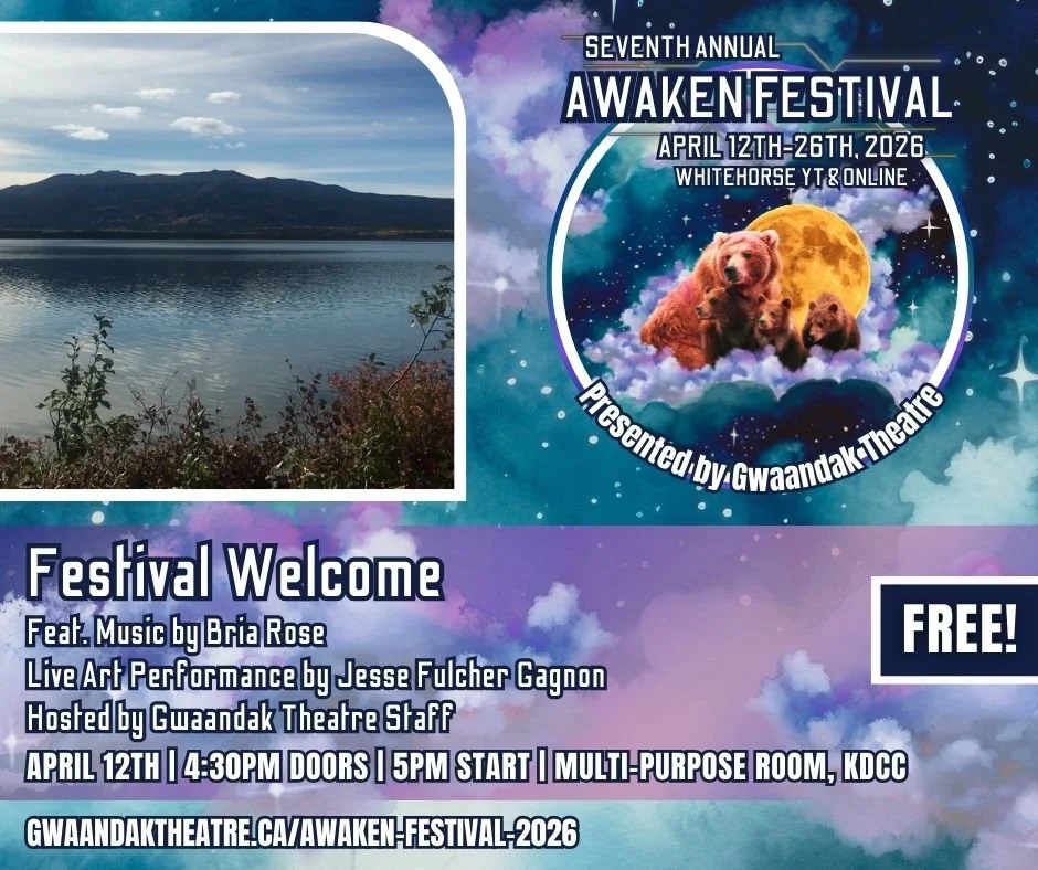 Join Gwaandak Theatre staff as we unveil the Seventh Annual Awaken Festival - there will be an opening prayer, welcome from EAD Colin Wolf, a live art performance piece by Jesse Fulcher Gagnon as well as special music by Bria Rose!